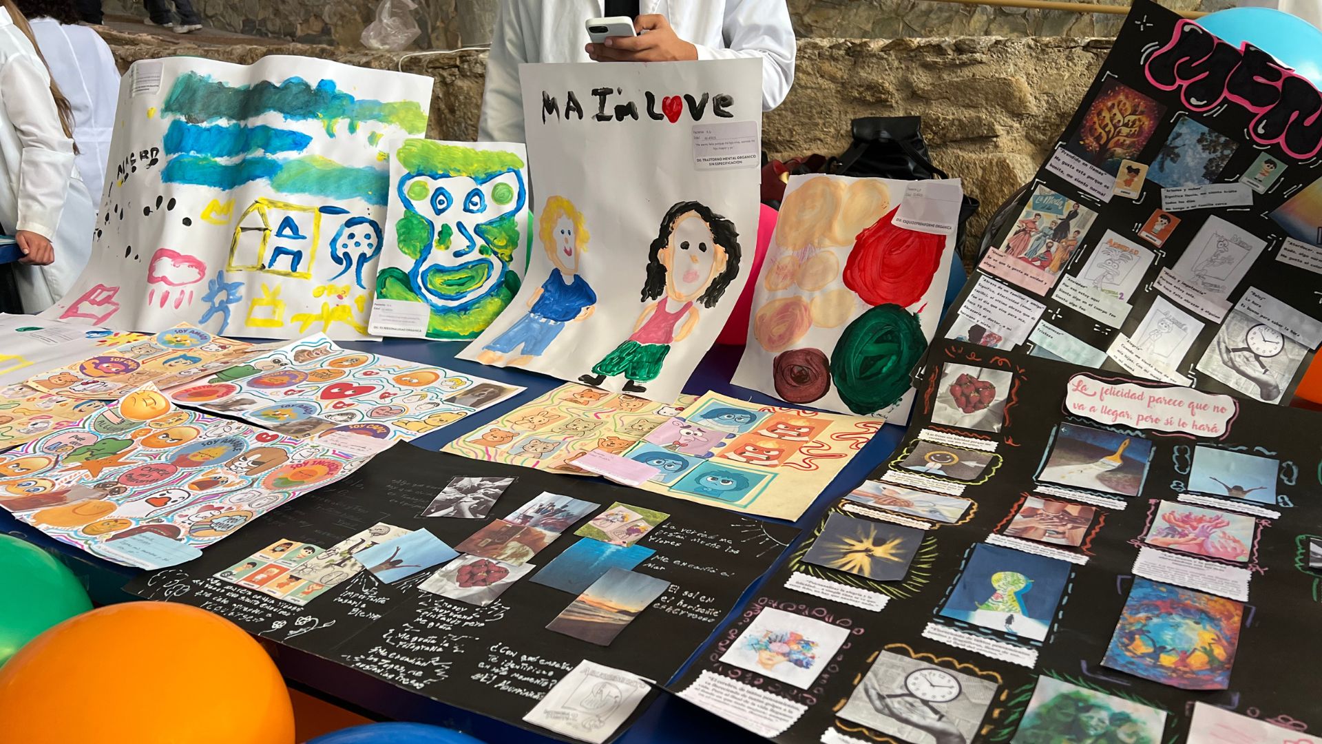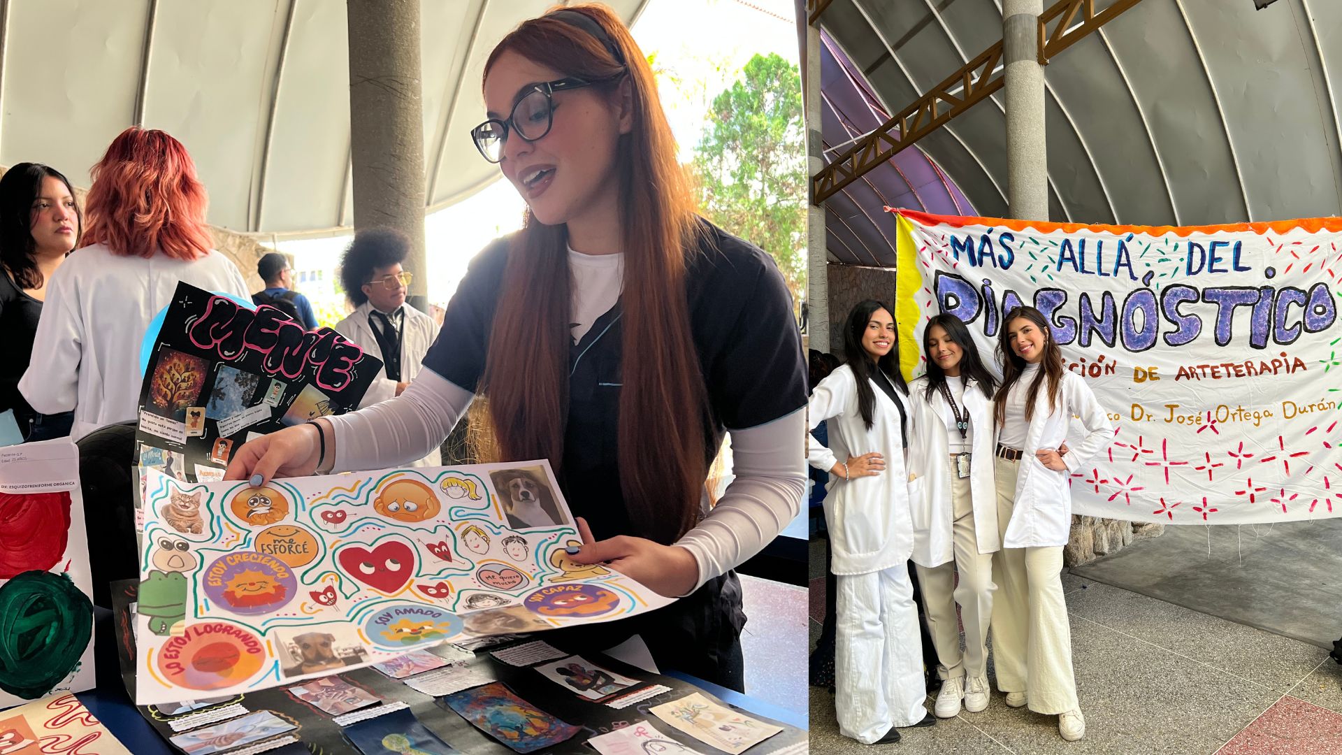 La galería exhibió una colección de piezas cargadas de significado, creadas por los propios pacientes como parte de su tratamiento. Entre las obras se pudieron observar collages elaborados con diversas técnicas, camisas pintadas que servían como lienzos de expresión personal y vision boards o tableros de visión, cada uno diseñado específicamente en respuesta al comportamiento y patología particular de cada individuo. Cada stand, explicaba la metodología del arte terapia aplicada, los objetivos terapéuticos perseguidos y los progresos observados en los pacientes a través de esta intervención no verbal, mientras que, los asistentes pudieron apreciar cómo el arte se convierte en un puente para explorar y comunicar emociones, pensamientos y conflictos internos que a veces las palabras no pueden describir.