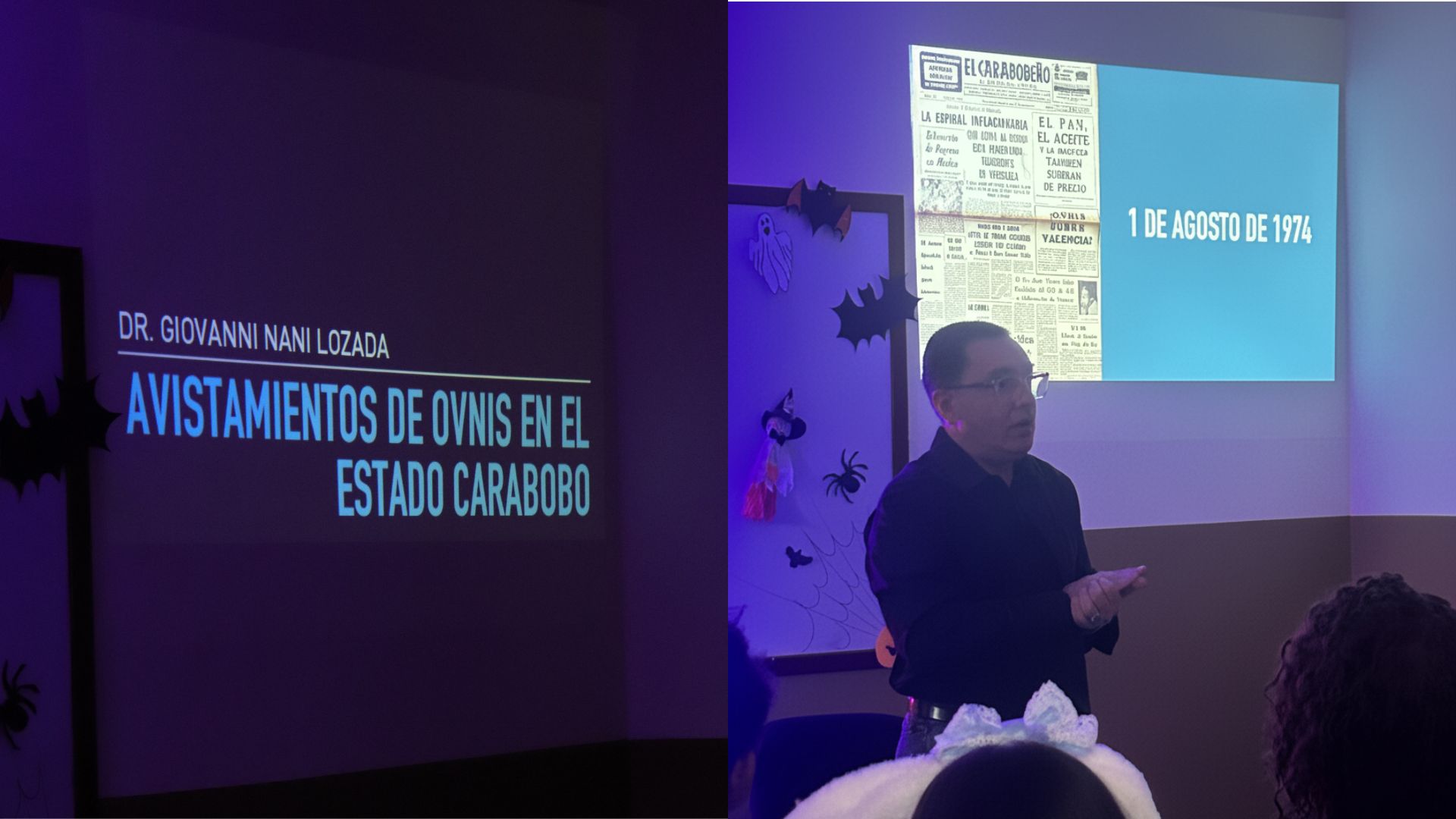 La apertura del ciclo de ponencias estuvo a cargo del Dr. Giovanni Nani, Rector de la Universidad Arturo Michelena (UAM), quien asombró a los asistentes con un recuento de varios avistamientos de objetos voladores no identificados (OVNIS) en distintas zonas del estado Carabobo, desde el año 1954 hasta el 2020.