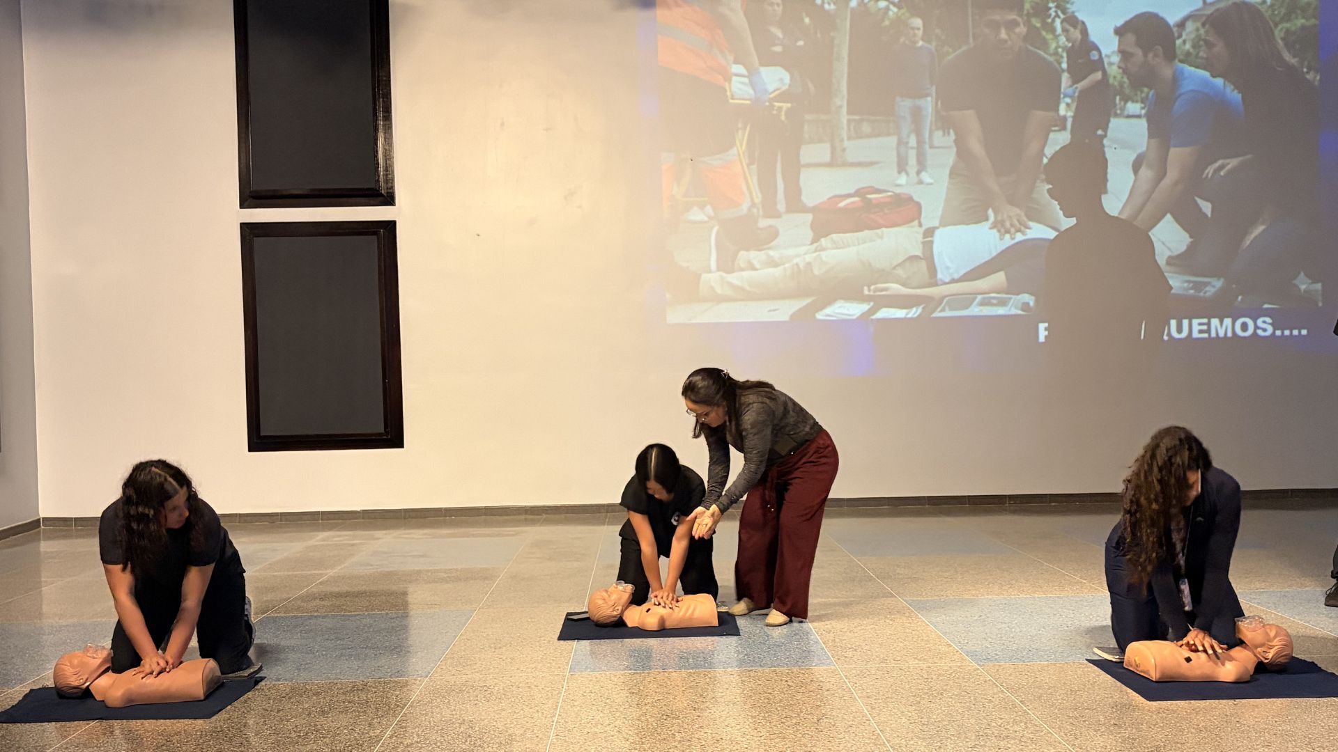 La sesión informativa estuvo dirigida y encabezada por la profesora María Medina y contó con la participación de más de 40 estudiantes de las escuelas invitadas; Durante la jornada, se abordaron temas claves como las técnicas de intervención ante situaciones de crisis, la importancia del soporte vital básico y los protocolos correctos de actuación frente a un colapso. Además, los estudiantes tuvieron la oportunidad de llevar estos conocimientos a la práctica mediante ejercicios con un maniquí de simulación, lo que les permitió reforzar sus habilidades técnicas.