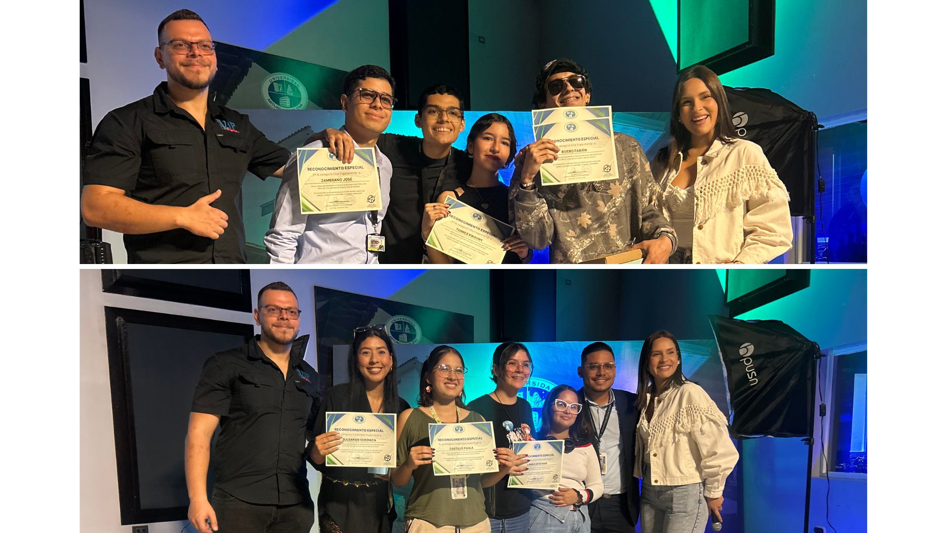 El jurado evaluador estuvo integrado por el abogado Edgar Páez y los profesores Salvador Tartaglia, Eliana Villasana y Andrea Barreto, quienes destacaron la calidad narrativa y el compromiso artístico de las producciones presentadas. Asimismo, asistieron la decana de la Facultad de Ciencias Económicas y Sociales, Dra. Leonor Acosta de Petit, y el vicerrector académico, Dr. Pedro Flores Tirado, quienes resaltaron la importancia de estos espacios para fortalecer la expresión creativa y el trabajo colaborativo entre los estudiantes.