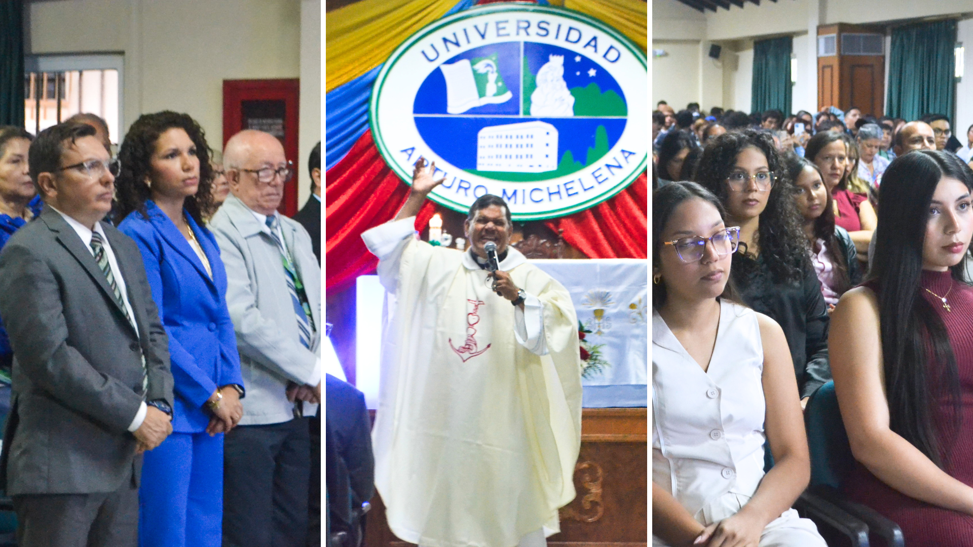 En el marco de la celebración, el Dr. Giovanni Nani Lozada, Rector de la Universidad Arturo Michelena, guió dicha ceremonia junto a las autoridades académicas y administrativas. Durante la misa, se presentaron las tradicionales ofrendas de la universidad como símbolo de gratitud y compromiso: libros, banderas, alimentos y bebidas que representaron el conocimiento, la identidad y la unión de toda la comunidad universitaria.