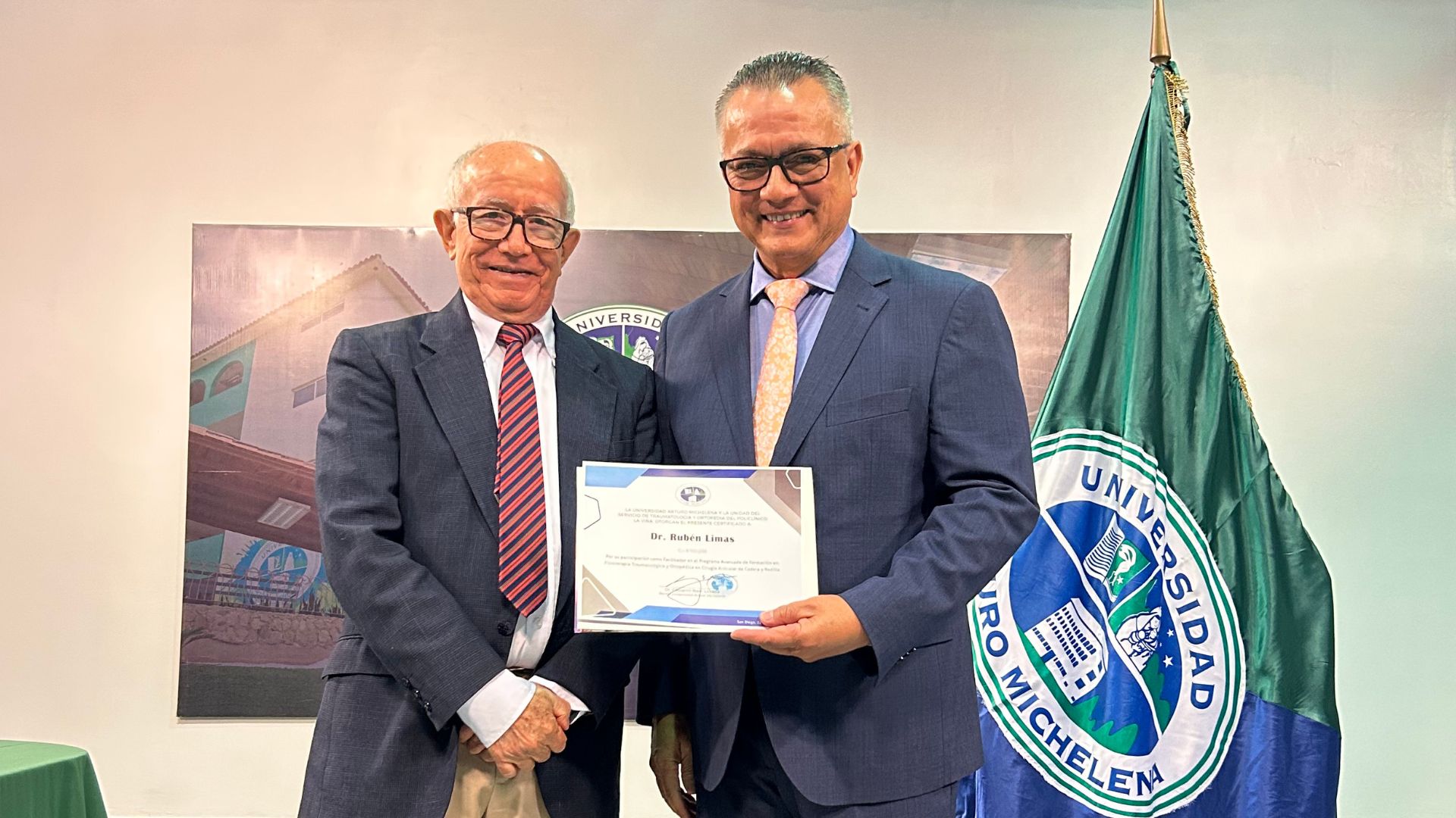 El Dr. Rubén Limas, coordinador del programa, ofreció palabras a los graduandos, resaltando el compromiso de los participantes con esta área crucial de la fisioterapia. La entrega de reconocimientos estuvo a cargo del Dr. Pedro Flores, Vicerrector de la universidad, junto al Dr. Limas.