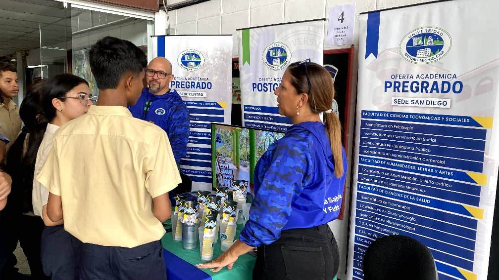 San Diego, 4 de abril. – Con el objetivo de brindar a los estudiantes de educación media herramientas que les permitan tomar decisiones informadas sobre su futuro académico y profesional, la Universidad Arturo Michelena (UAM) participó en la Expovocacional realizada en el Colegio Coronel Adolfo Valbuena, los días martes 4 y miércoles 5 de abril.