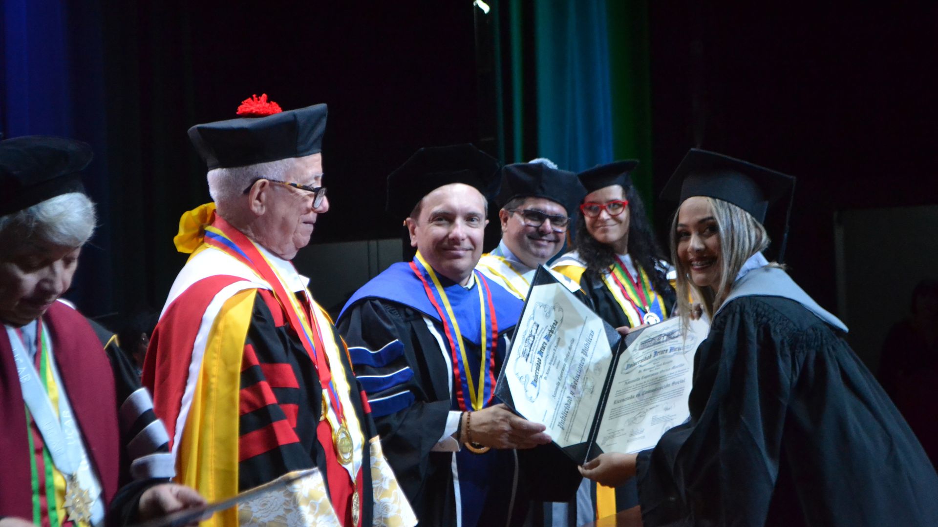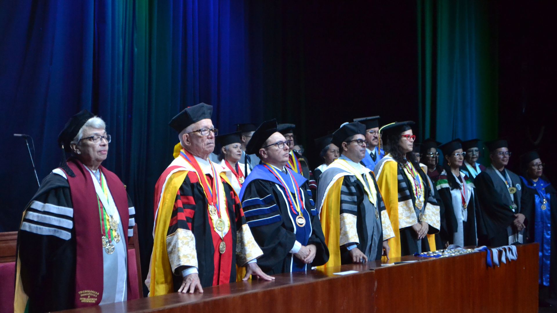 La entrega de diplomas y medallas estuvo a cargo de las autoridades universitarias, encabezadas por el Rector, Dr. Giovanni Nani Lozada; el secretario, Dr. Arturo Velázquez; y el Vicerrector Académico, Dr. Pedro Flores Tirado. Además, participaron los decanos de las diversas facultades de la institución, entre ellos la Dra. Leonor Acosta de Petit y la Dra. Lesvia Dirino, quienes felicitaron a los graduandos por alcanzar esta importante meta académica.