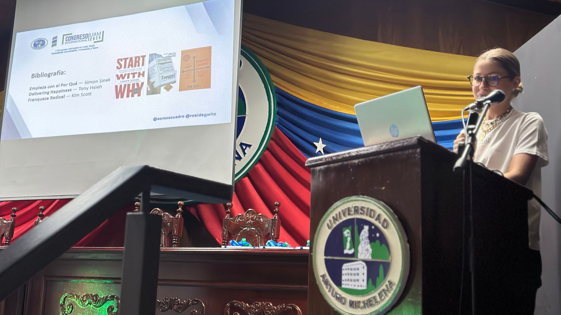 San Diego, 12 de noviembre de 2025.- Tras una serie de actividades y ponencias que se realizaron este martes en conmemoración del 24 aniversario, la Universidad Arturo Michelena (UAM) dio inicio al II Congreso Internacional UAM 2025, bajo el lema “Conectando conocimiento, innovación y futuro”, un espacio académico que reunió a destacados ponentes nacionales e internacionales, profesores y estudiantes con el propósito de promover el intercambio de ideas, la reflexión crítica y la formación integral en torno a los desafíos contemporáneos de la educación, la tecnología y el liderazgo.